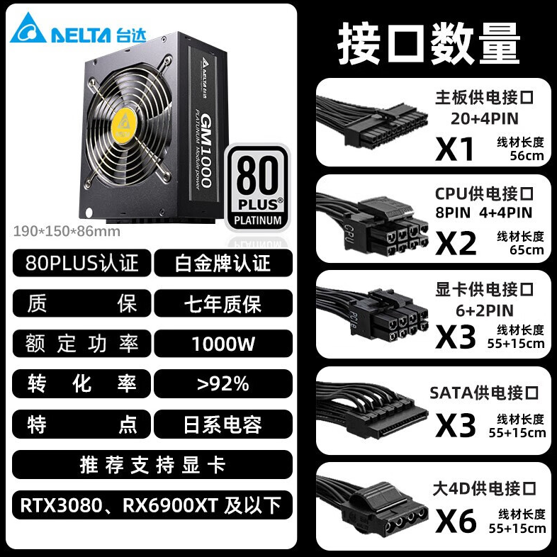 台达 GM1000 白金电竞模组系列电源