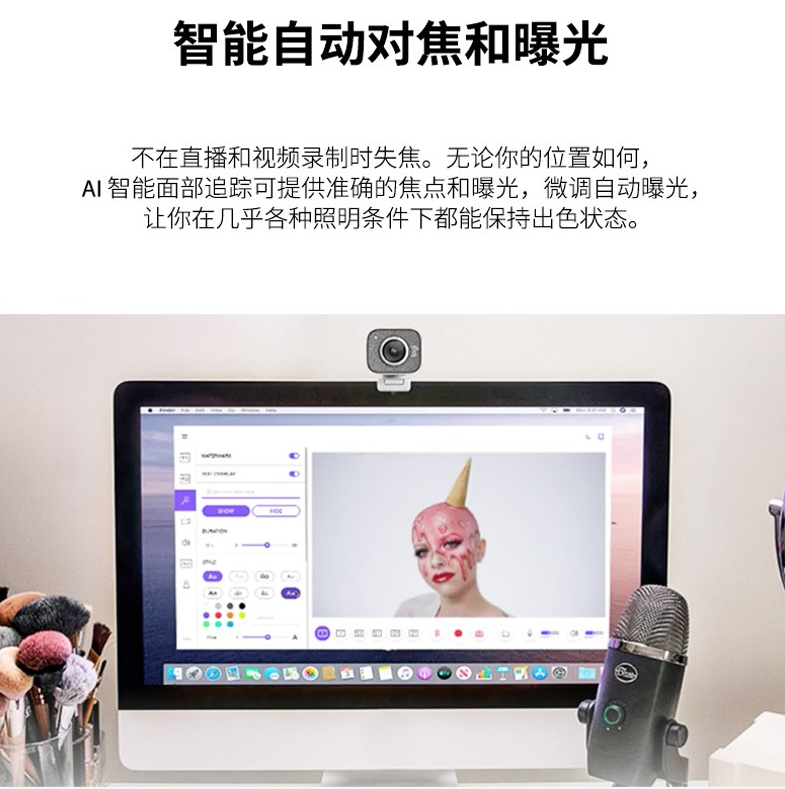 罗技Stream Cam高清直播摄像头 多系统内置麦克风